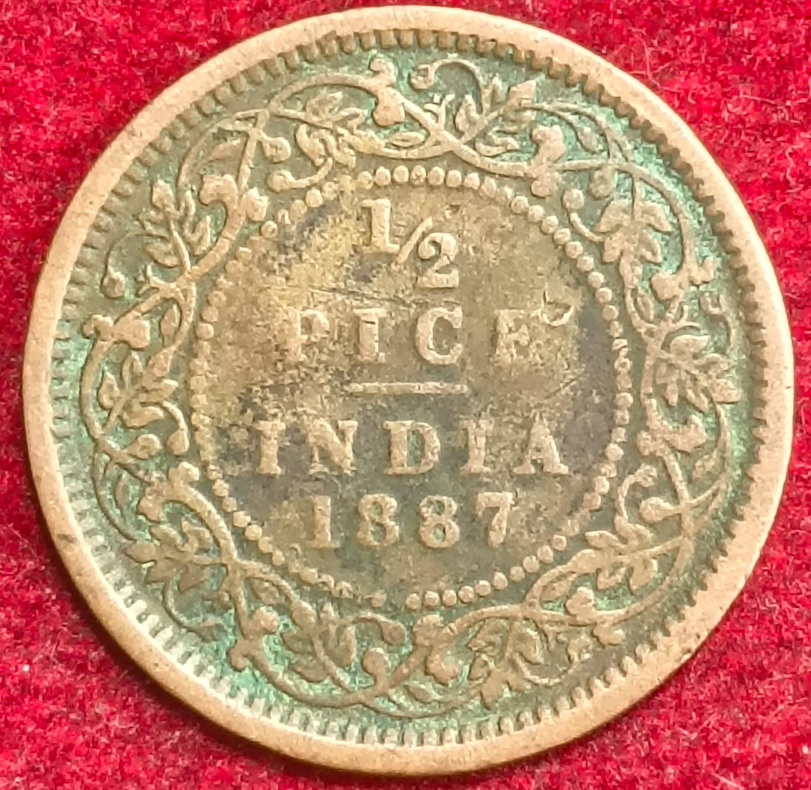 BRITISH INDIA VICTORIA 1/2 PICE 1887 RARE COIN #S-136