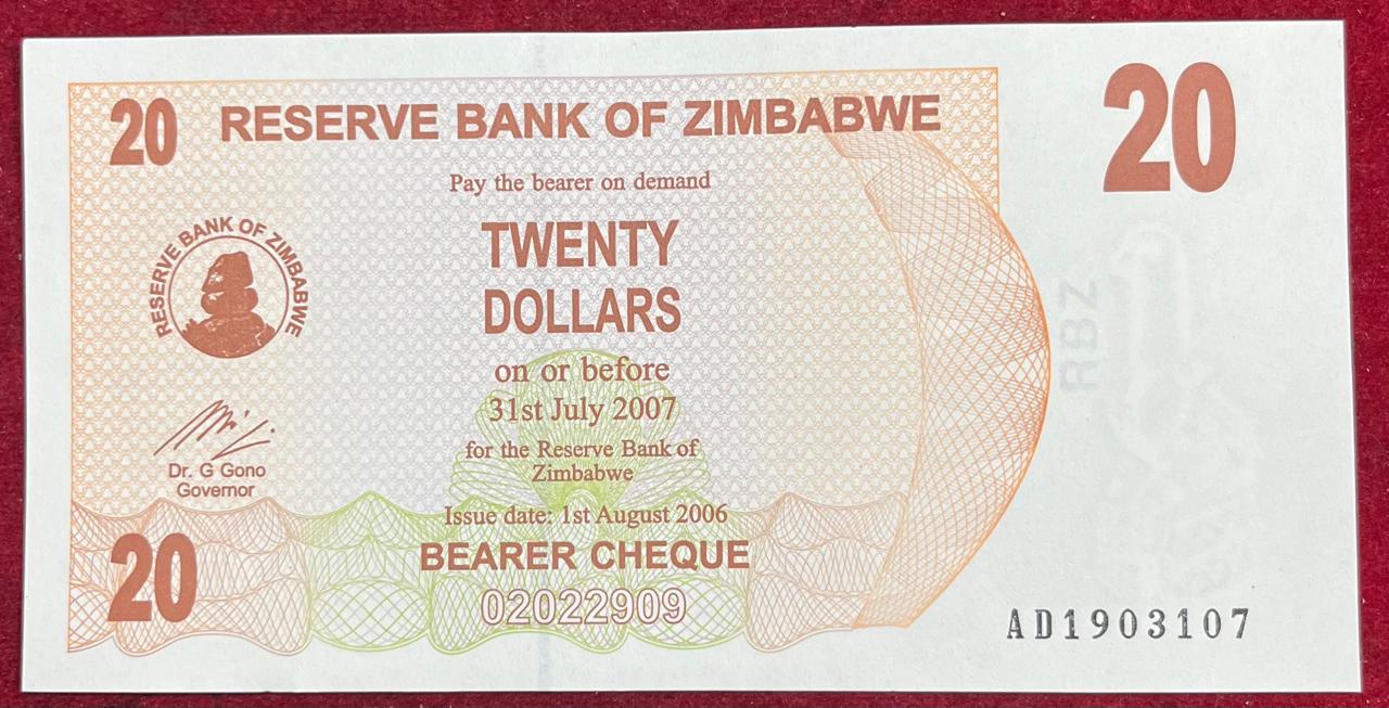 ZIMBABWE 20 DOLLARS UNC BANK NOTE