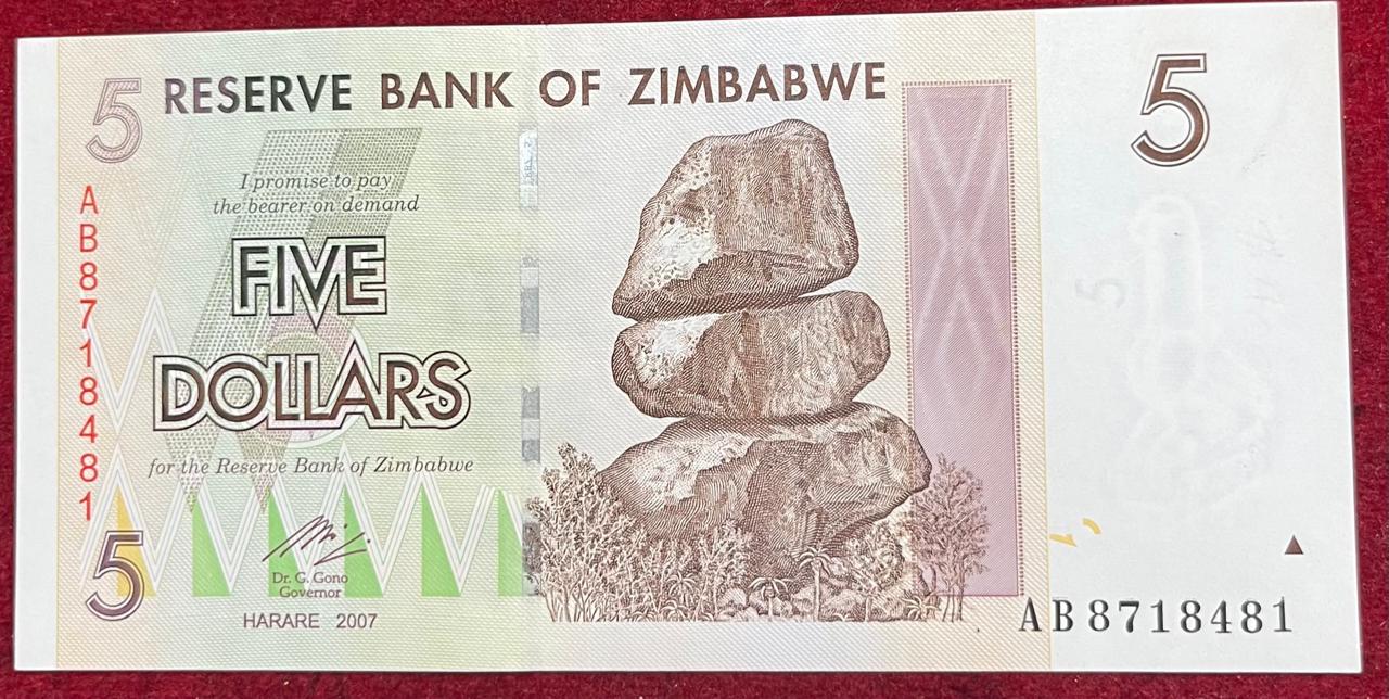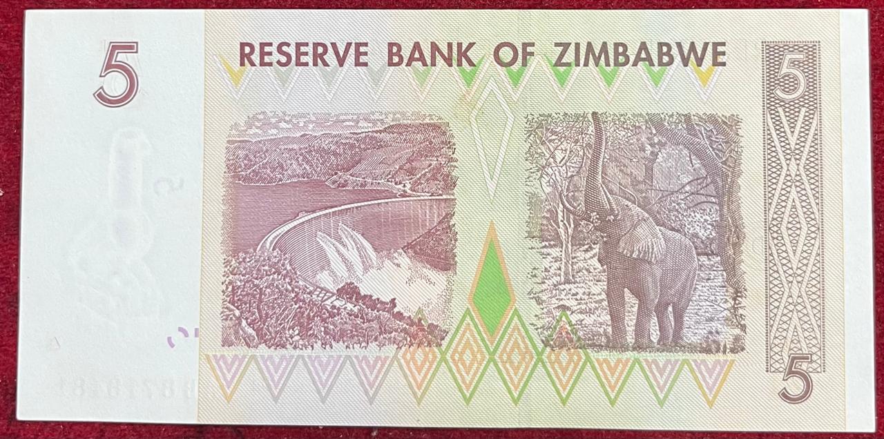 ZIMBABWE 5 DOLLARS UNC BANK NOTE