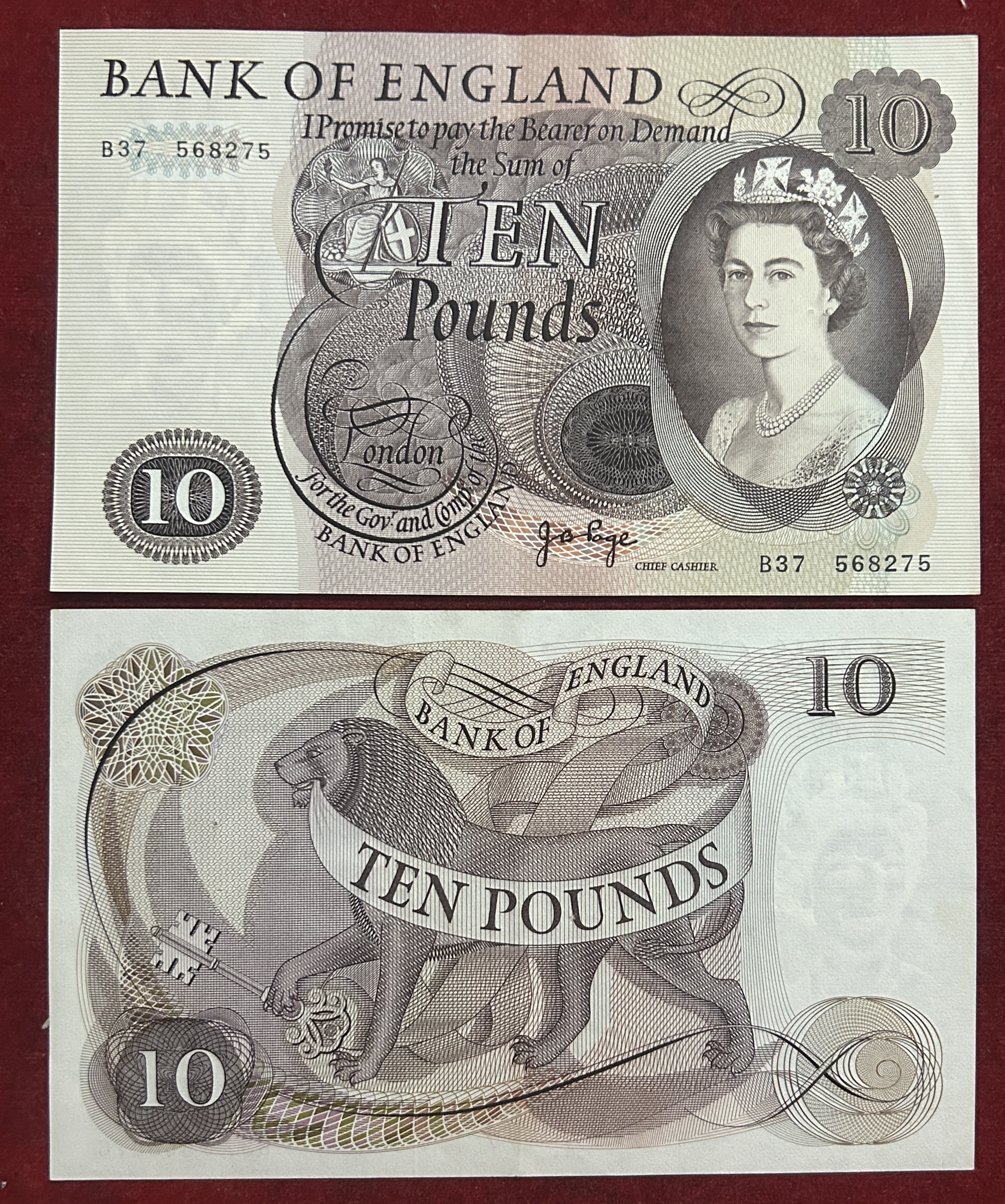 10 Pounds – Elizabeth II England Big size old ishu u fold almost unc condition Extermaly rare note