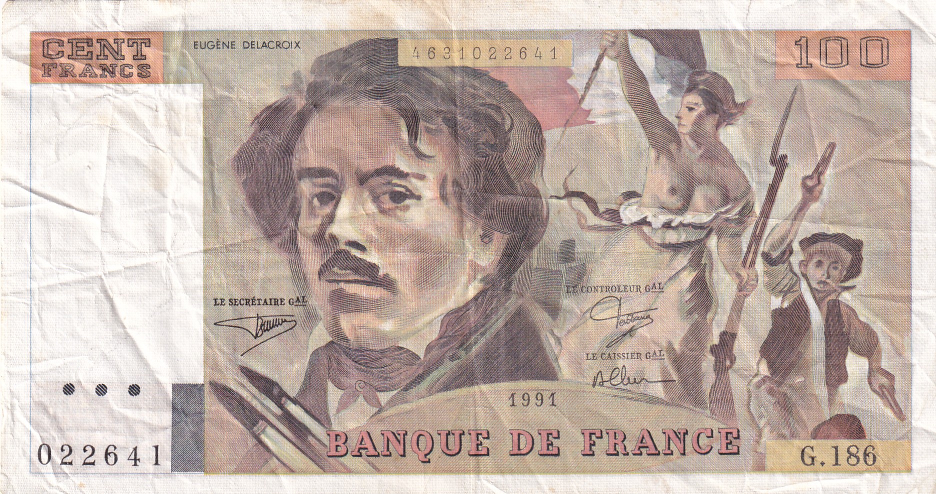 100 French Francs (Eugene Delacroix) Rare World Note#B2