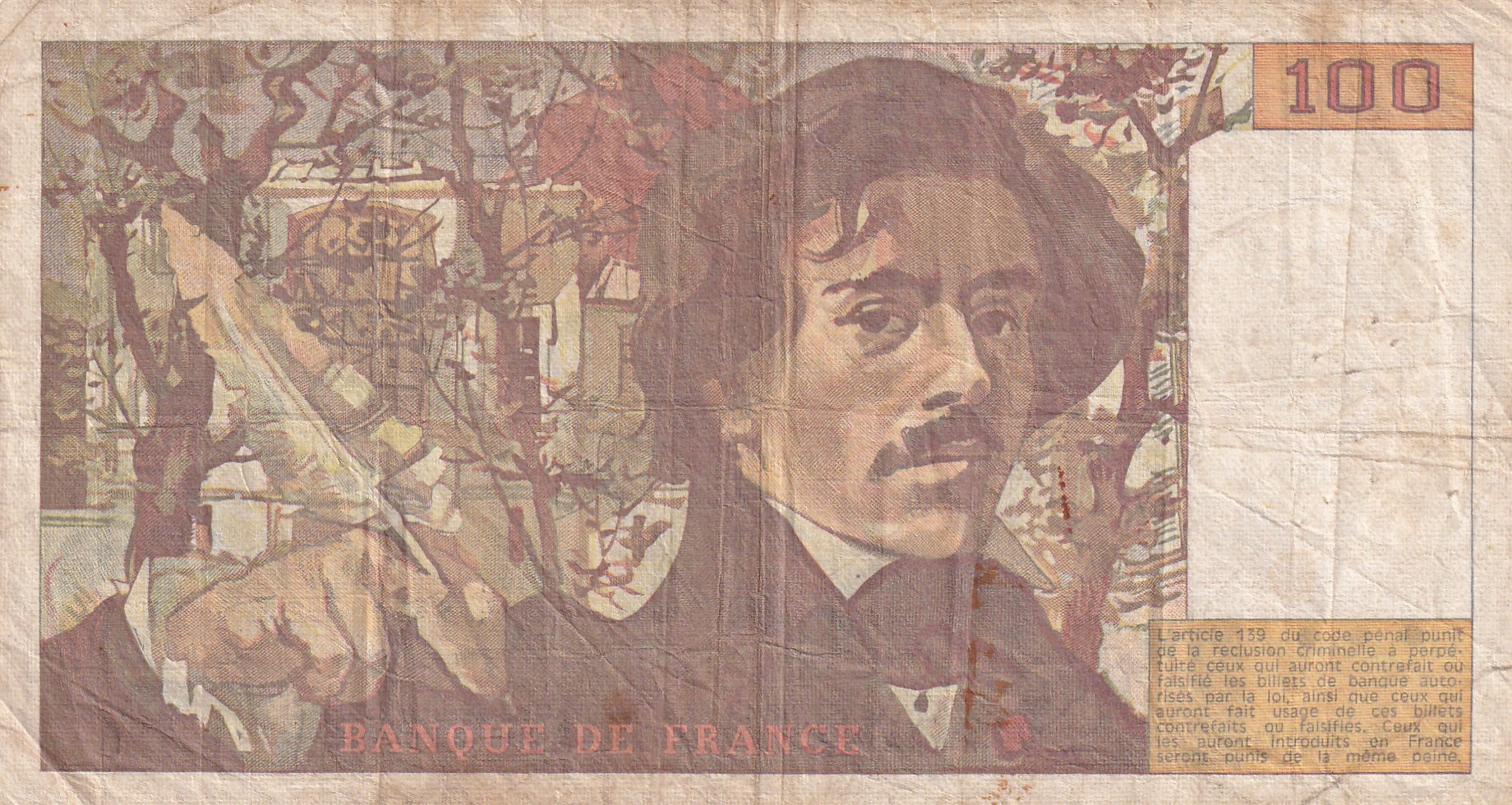 100 French Francs (Eugene Delacroix) Rare World Note#B2