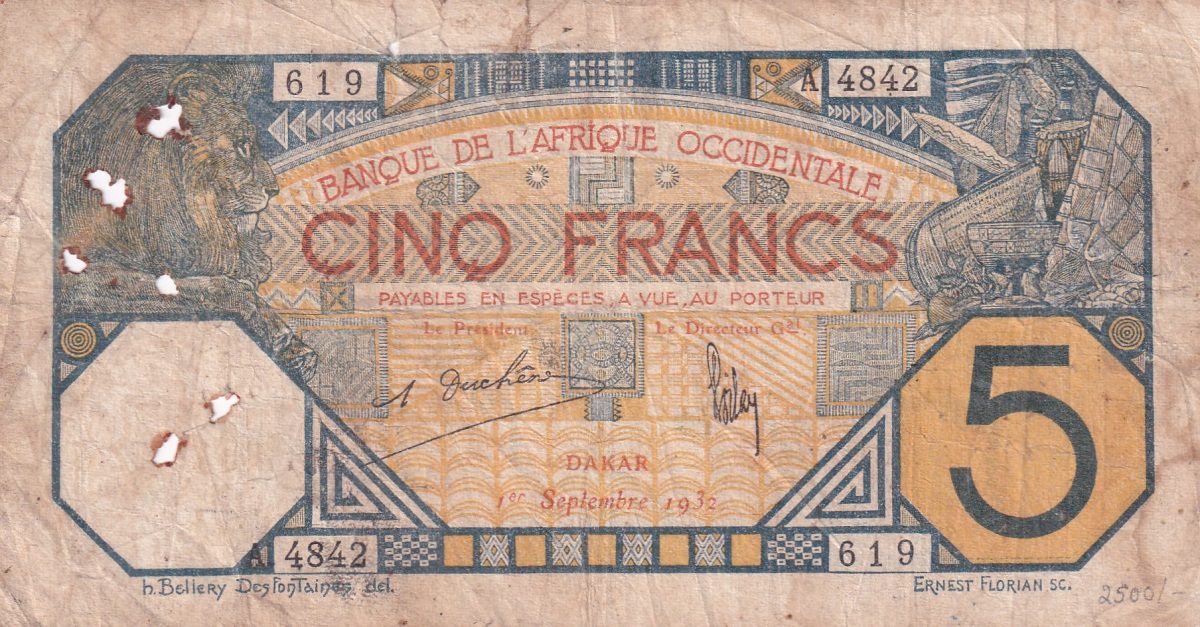 💎 Historic 1932 5 Francs Dakar banknote