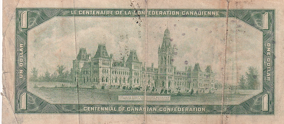 1 Dollar 1967 Canada Fine Note Three Side Fold Rare