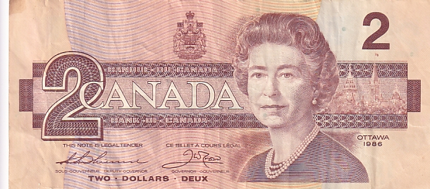2 Dollars 1986 Canada Very Fine Note #3