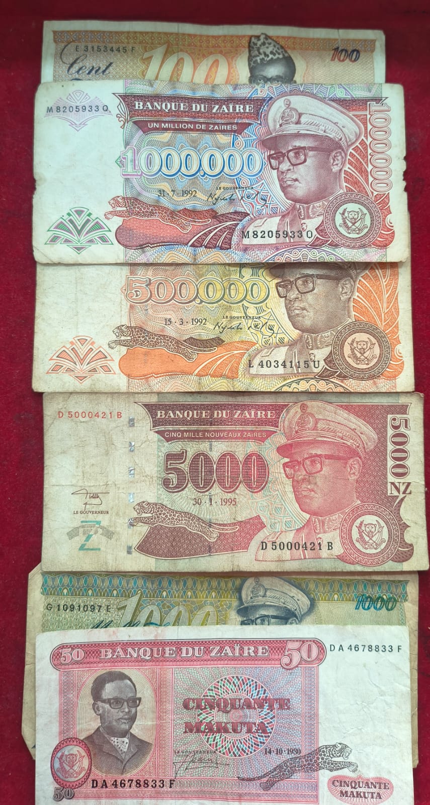 22 Different ZAIRE ALL DIFFERENT DENOMINATION RARE (22 NOTE SET )