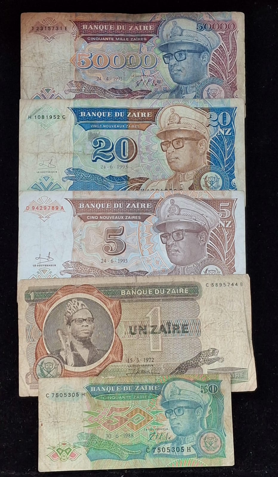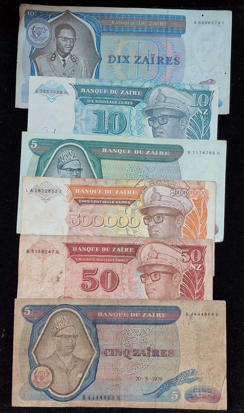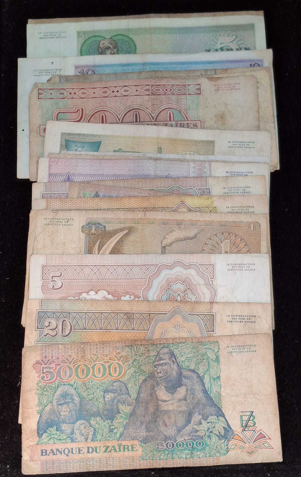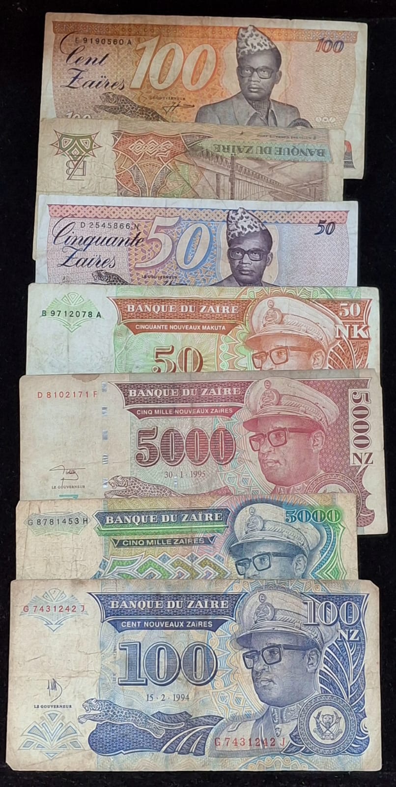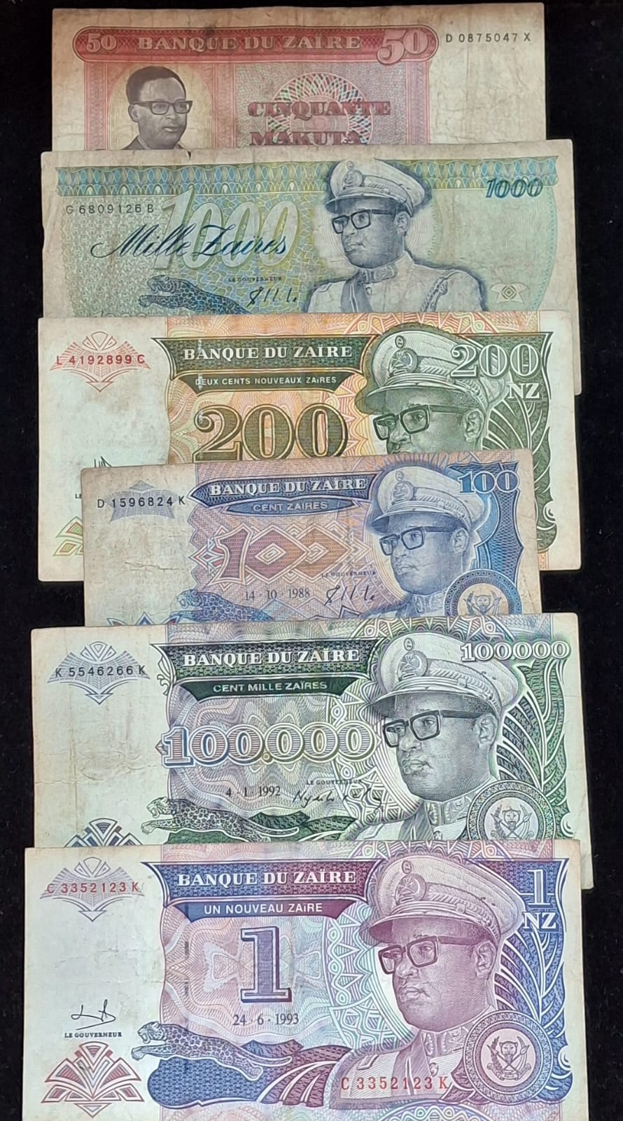 24 Different ZAIRE ALL DIFFERENT DENOMINATION RARE (24 NOTE SET)