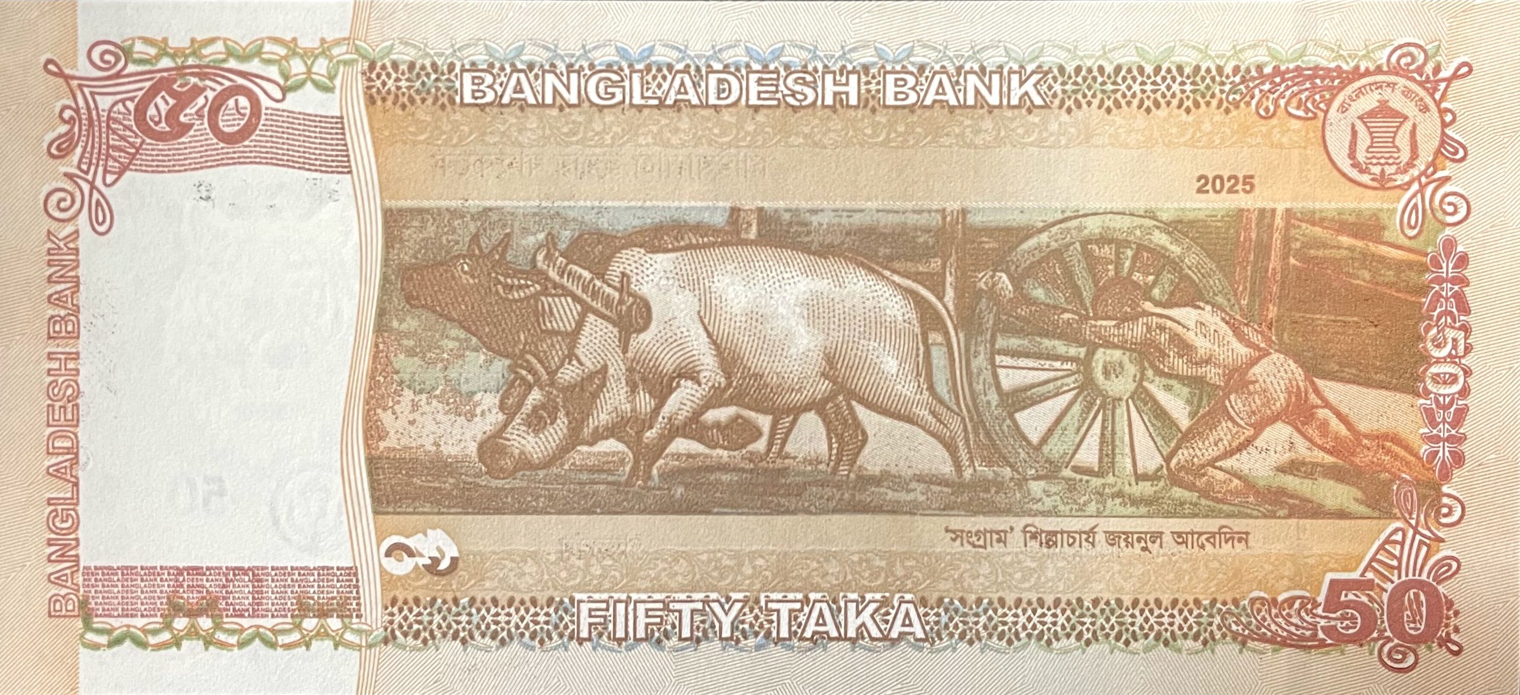 50 Taka of Bangladesh (AD2015) with Ahsan Manzil, Dhaka/Zainul Abedin’s famous painting ‘Sangram’