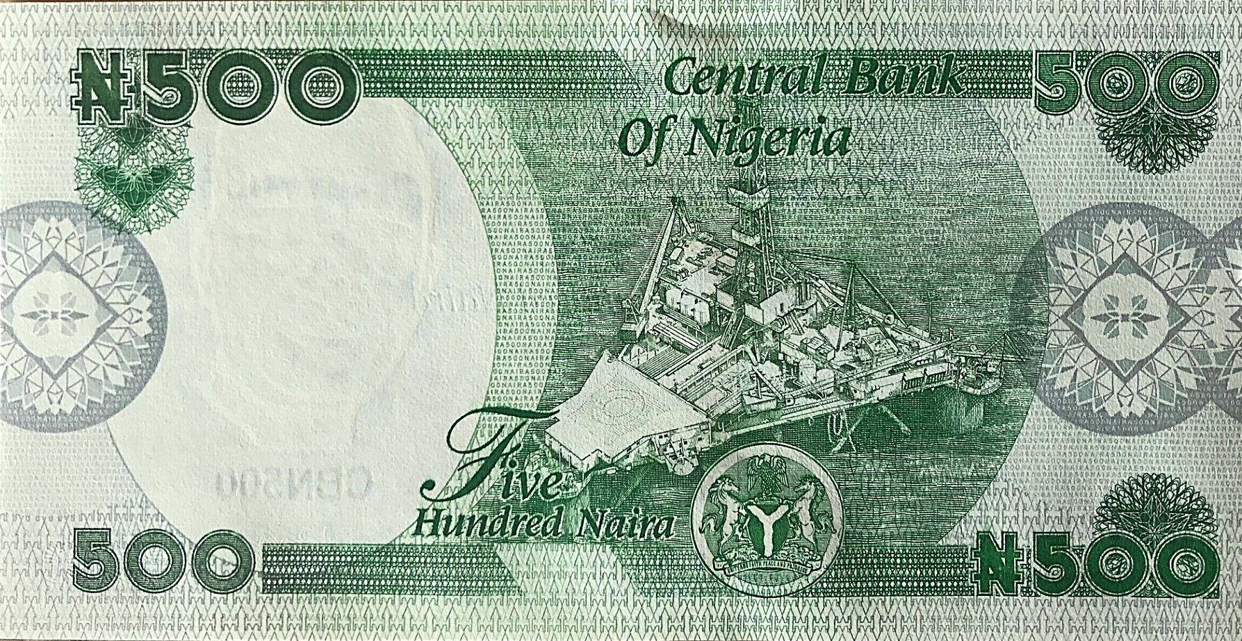 Nigeria Country, (AD 2022-2025), 500 Naira, Dr. Nnamdi Azikiwe (1904-1996) – First President / Offshore oil rig platform, UNC Grade.