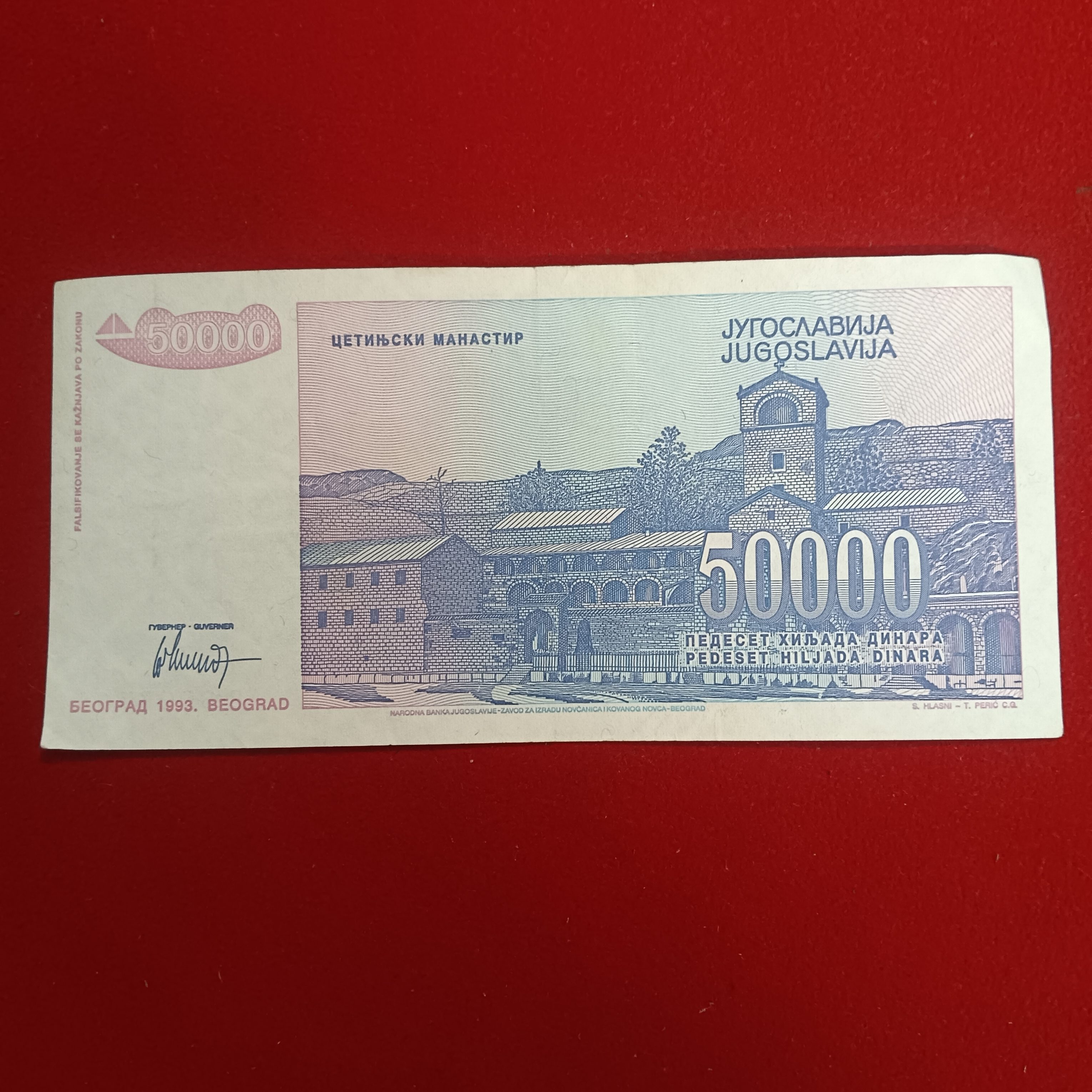 - 50,000 Yugoslav dinar banknote issued in 1993, a notable piece for numismatic collections.
