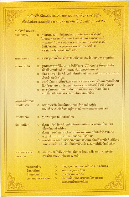 70 Baht Thailand Large Note Standing King Folder Unc Rare