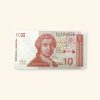 - Denomination: The banknote is marked with “10” in two places and the text “десет динара” (“deset dinara”), meaning ten dinars in Serbian.