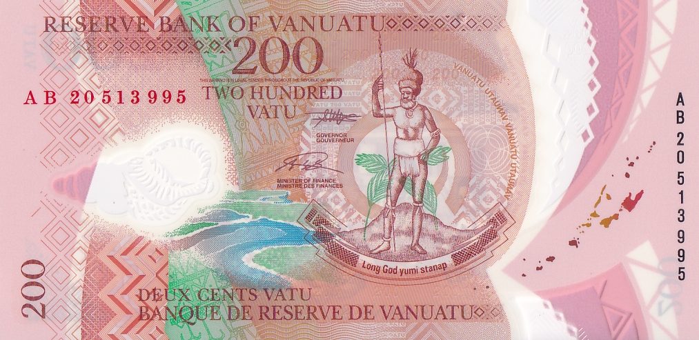 AB prefix 200 Vatu of Vanuatu Polymer Note Unc
