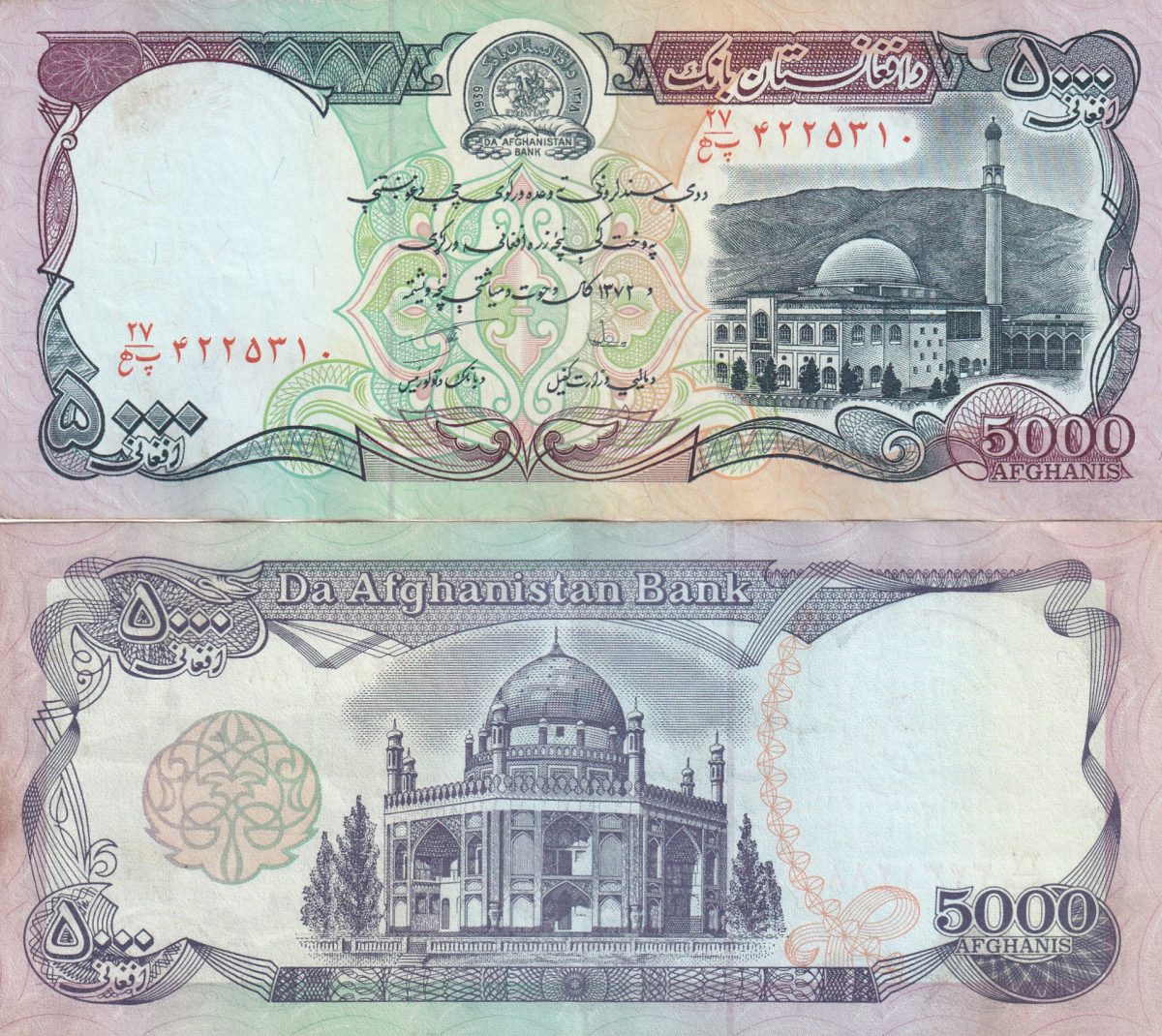 | Value | 5000 Afghanis (أفغاني) (5000 AFA) |