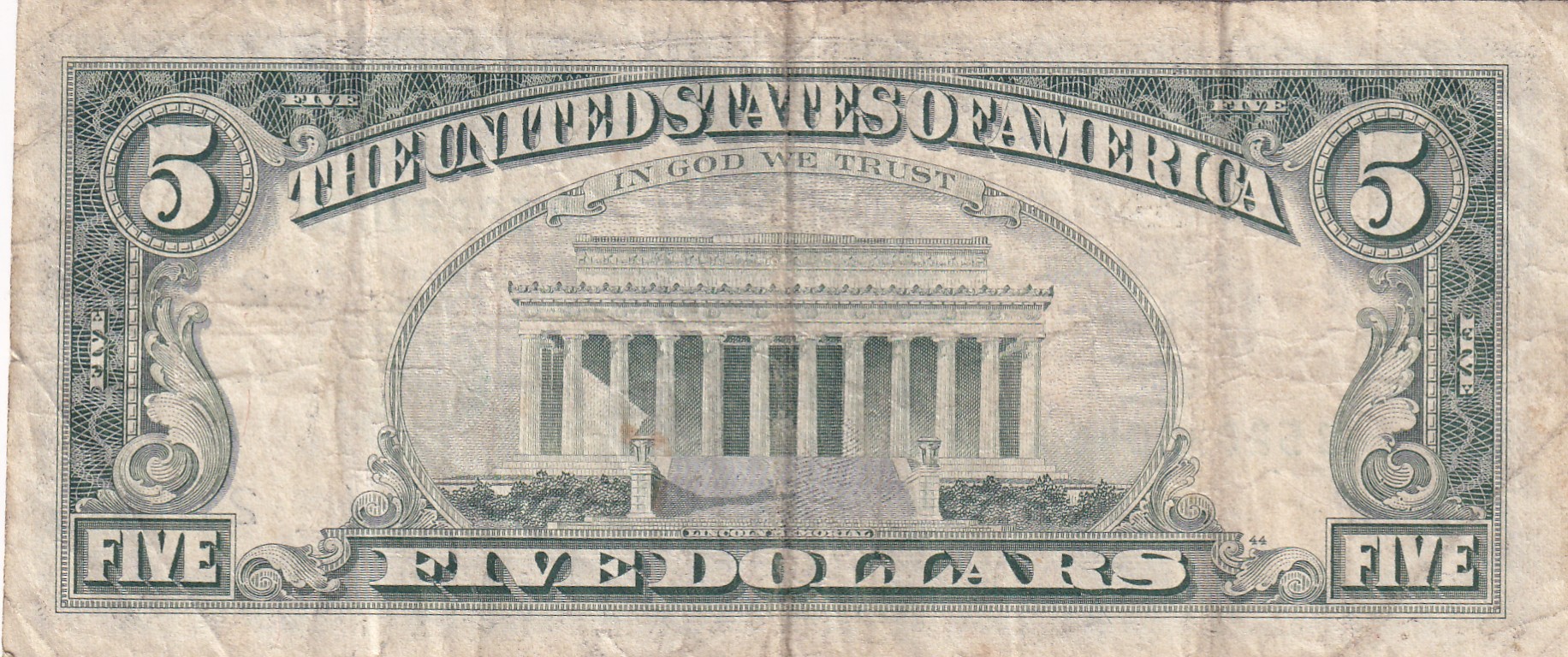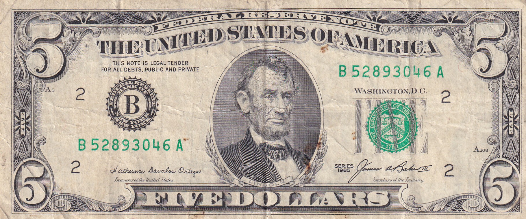 AMERICA 5 DOLLARS (LINCON) RARE NOTE # B-2