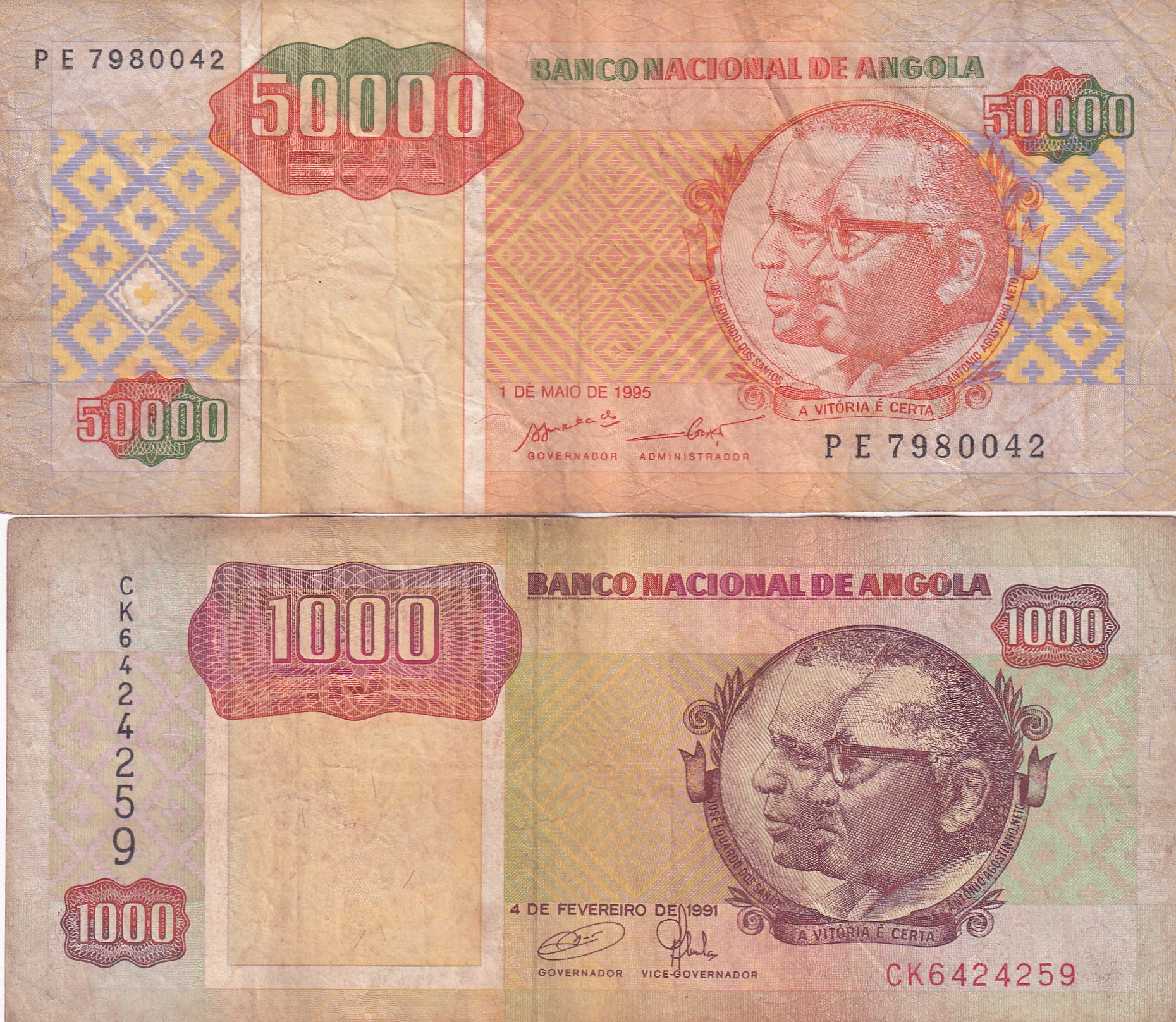 ANGOLA 2 DIFFERENT (50000 + 1000 ) KWANZAS RARE ( 2 NOTE SET)