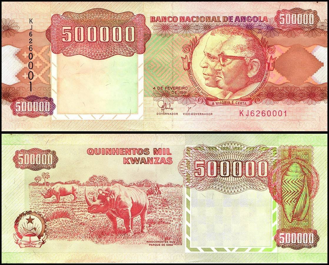 Angola 500000 Kwanzas World Banknote Rhino Series 1991 P134 UNC Unique and Rare
