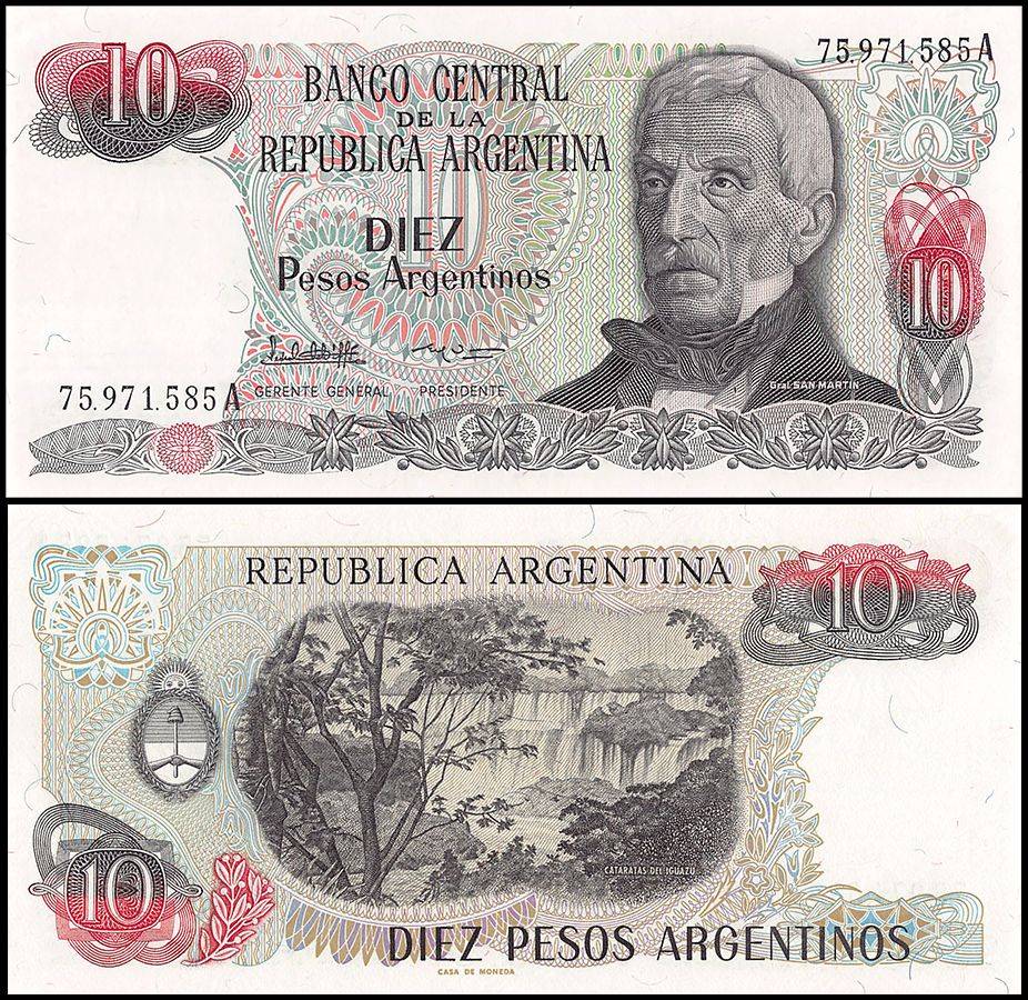 Argentina 10 Pesos Argentinos Banknote 1983 to 1984 ND P313a2 UNC Unique and Rare