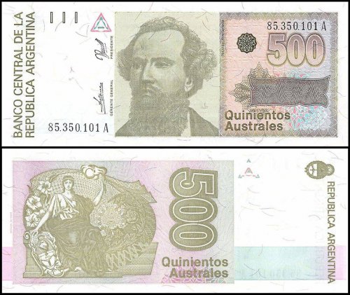 Argentina 500 Austral and features Nicolas Avellaneda World banknote UNC Unique and rare