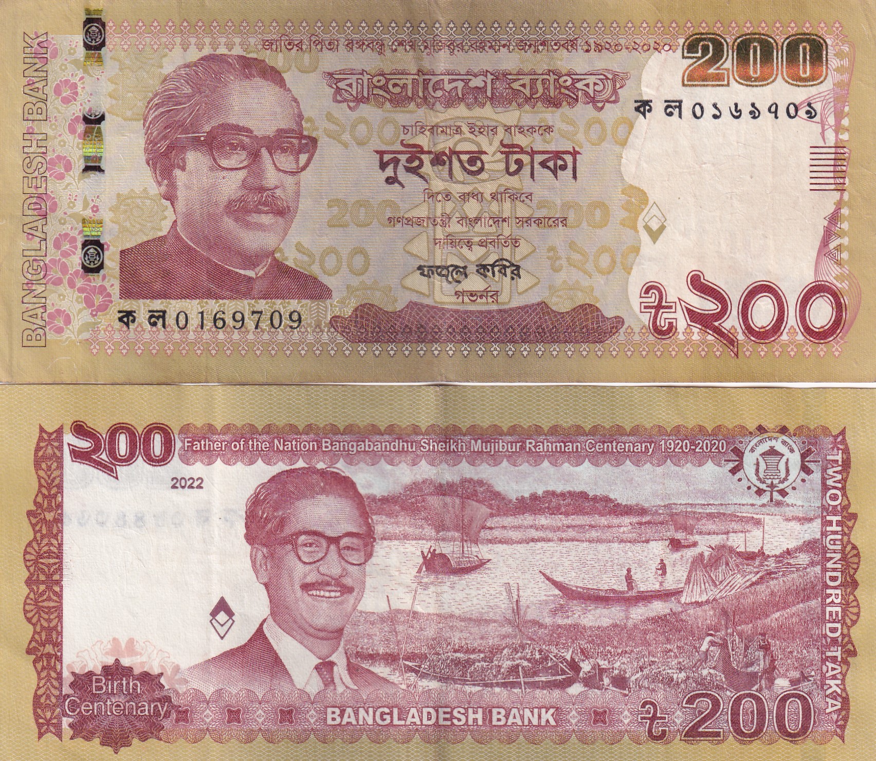 Bangladesh 200 Taka Father of the Nation Bangabandhu Sheikh Mujibur Rahman Centenary RareNote #Q