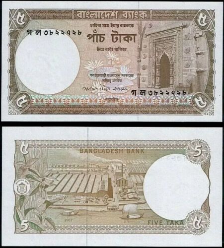 Bangladesh 5 Taka Banknote 2007 P52e UNC Unique and Rare
