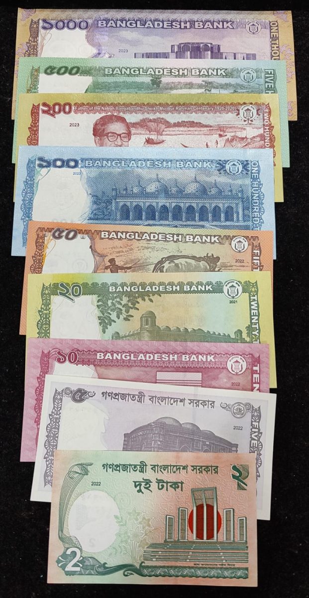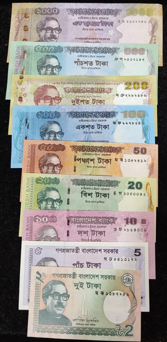 Bangladesh 9 pcs gem unc set 1000 to 2 rupees all different note unc
