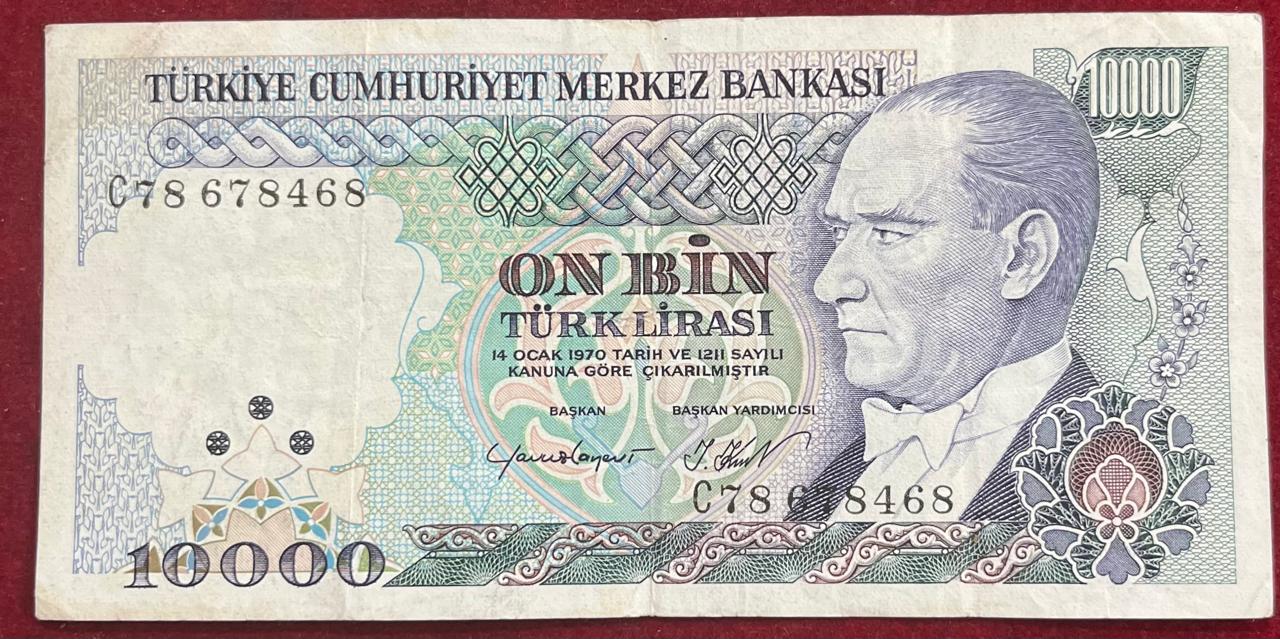 BANKASI 10000 ON BIN TURK LIRASI RARE NOTE