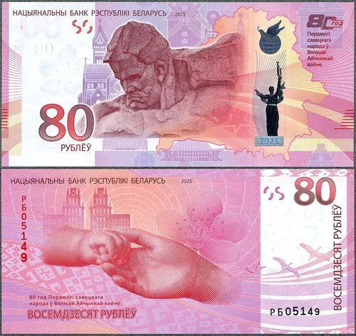 Belarus 80 Rubles 2025 Commemorative Banknote 80th Anniversary Victory WWII P44 UNC with Official Folder