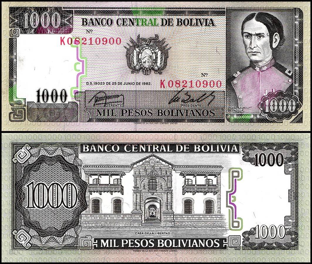 Bolivia 1000 Pesos Bolivianos World Banknote D 25 06 1982 P167a3 UNC Unique and Rare