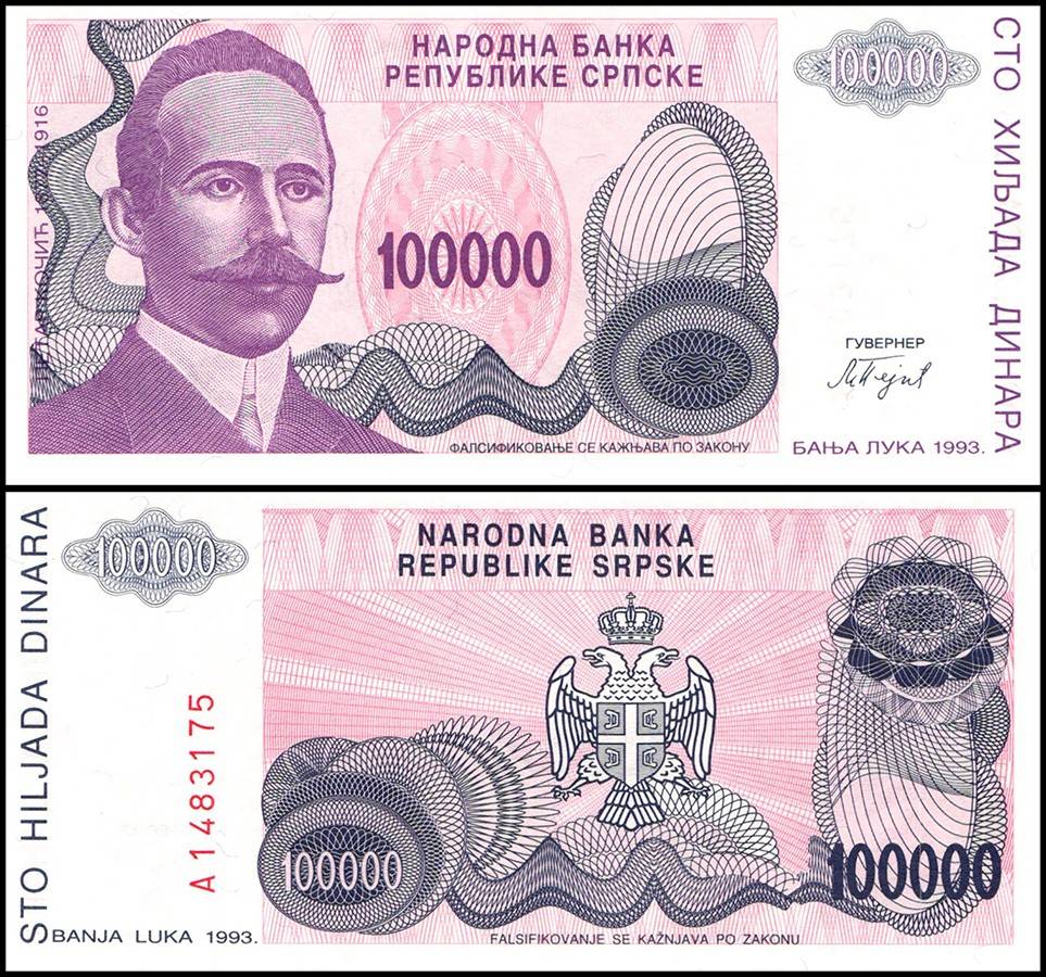 Bosnia and Herzegovina 100000 Dinara Banknote 1993 P154 UNC Unique and Rare
