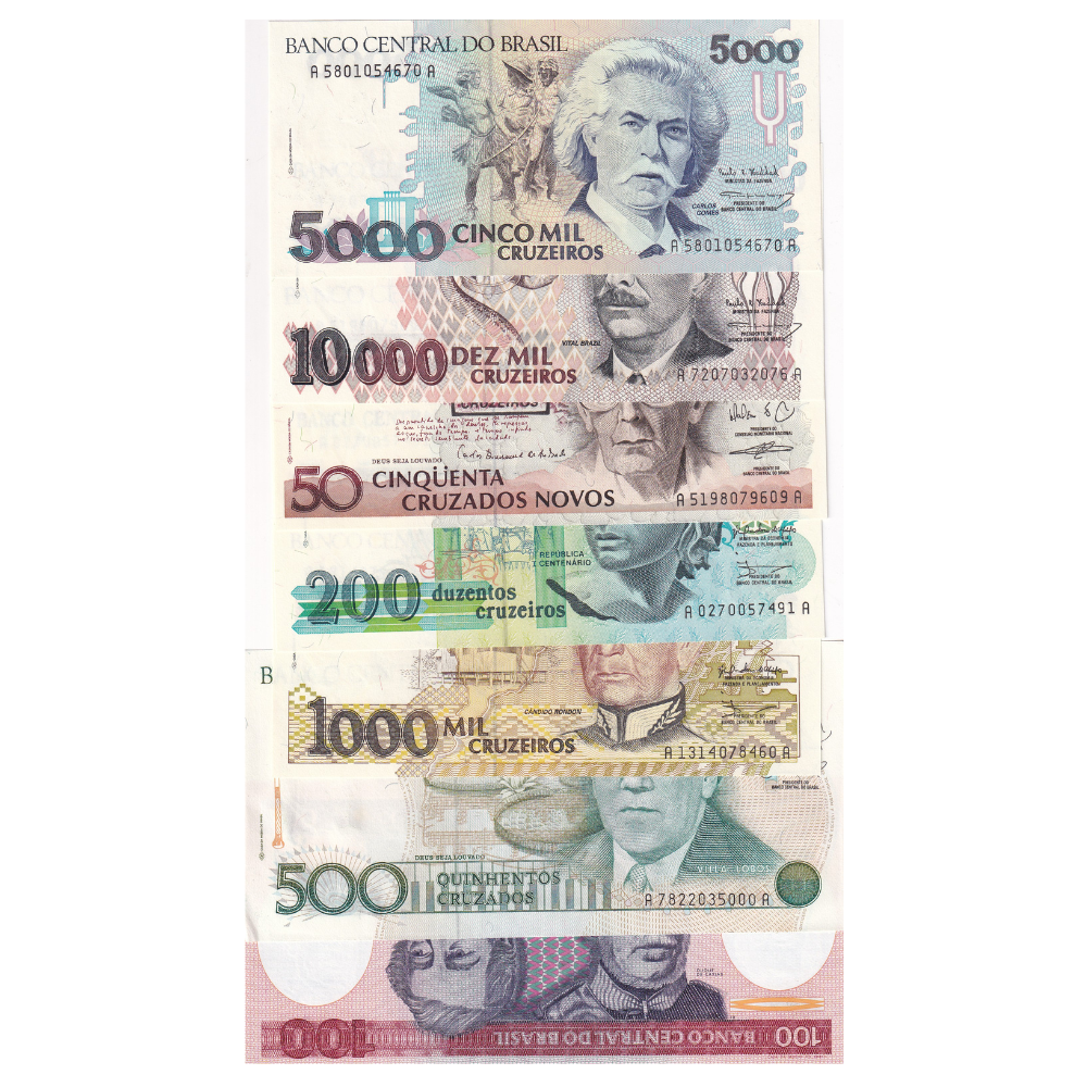Brazil 7 Different Denomination Rare UNC Set(7 Pcs)#1100