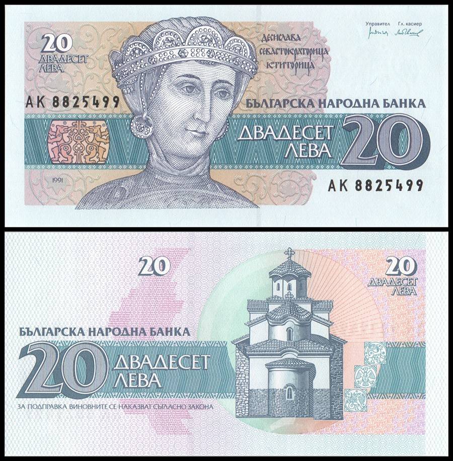 Bulgaria 20 Leva Banknote 1991 P100 UNC Unique and Rare