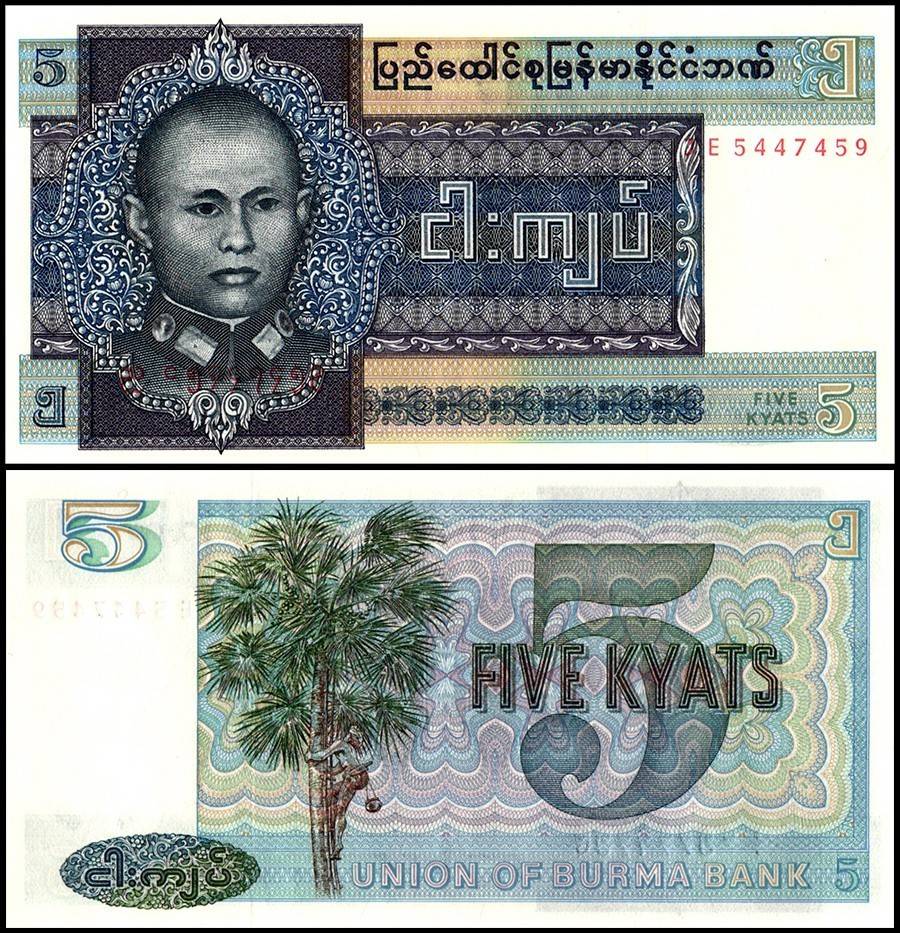 Burma 5 Kyats Banknote 1973 ND P57 UNC Unique and Rare