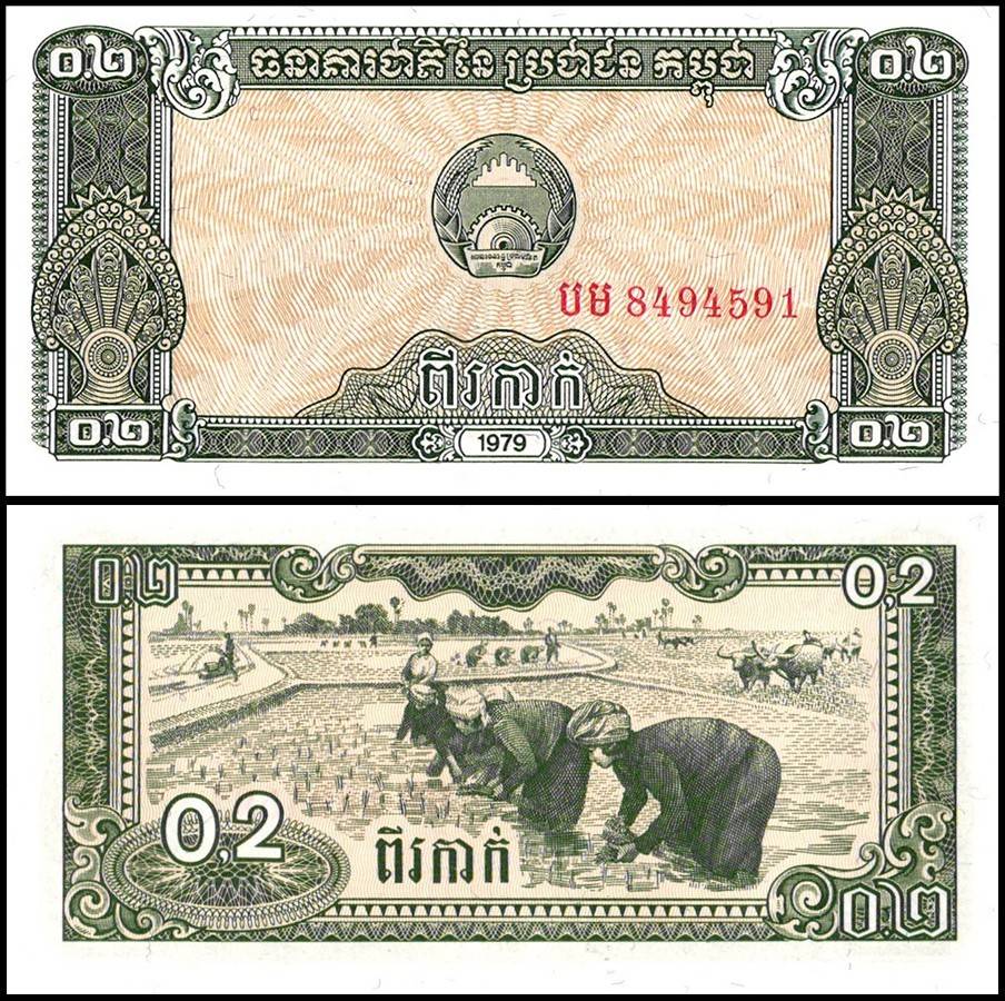 Cambodia 0.2 Riel Banknote 1979 P26 UNC Unique and Rare