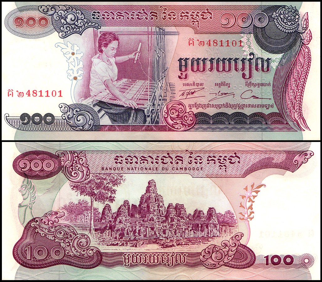 Cambodia 100 Riels Banknote 1973 ND P15b UNC Unique and Rare