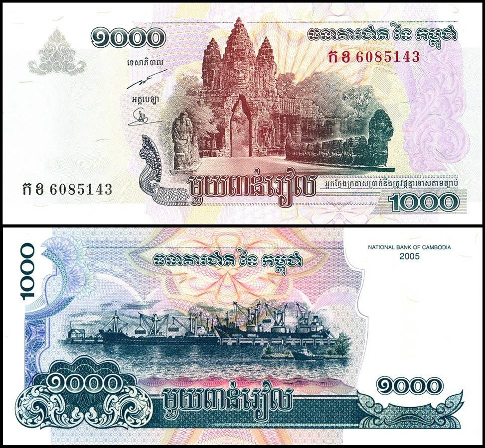 Cambodia 1000 Riels Banknote 2005 P58a UNC Unique and Rare