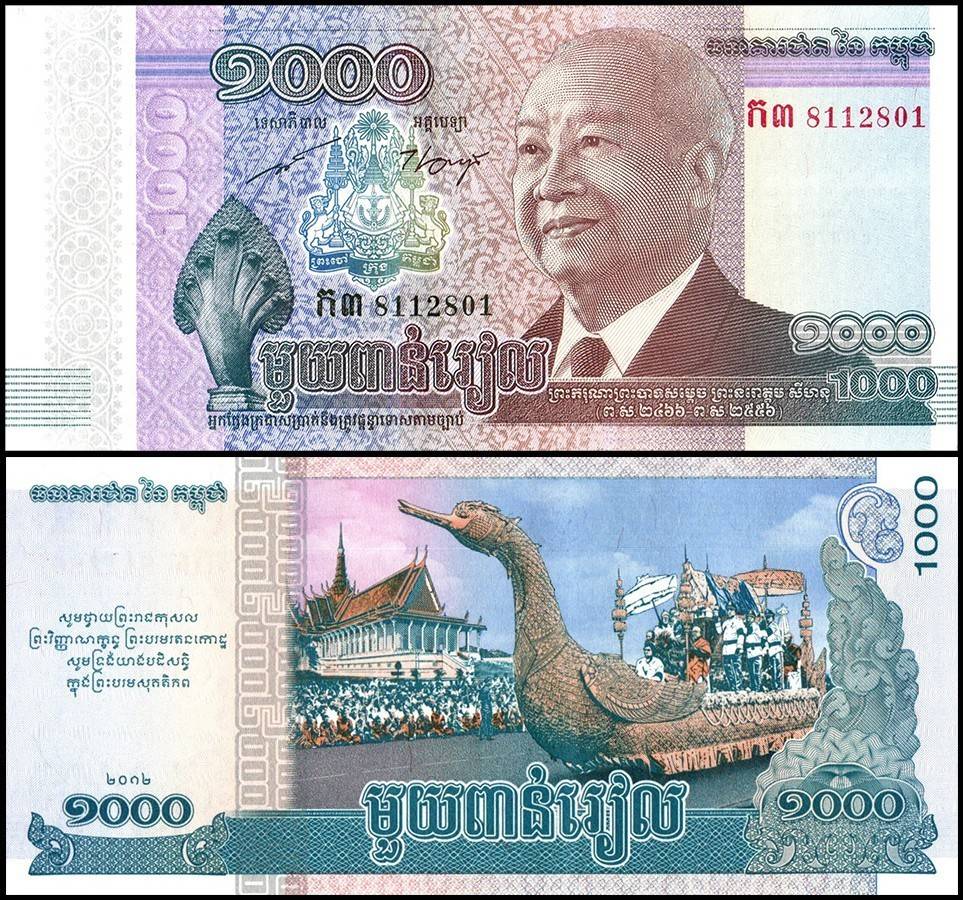 Cambodia 1000 Riels Banknote 2012 P63 UNC Commemorative Late King Norodom Sihanouk Unique and Rare