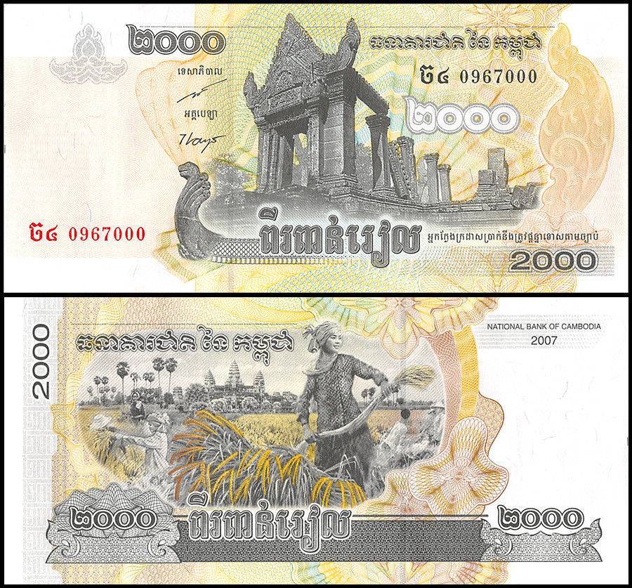 Cambodia 2000 Riels Banknote 2007 P59a UNC Unique and Rare