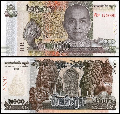 Cambodia 2,000 Riels World Banknote for 2022 features King Norodom Sihamoni World Banknote UNC Unique and rare