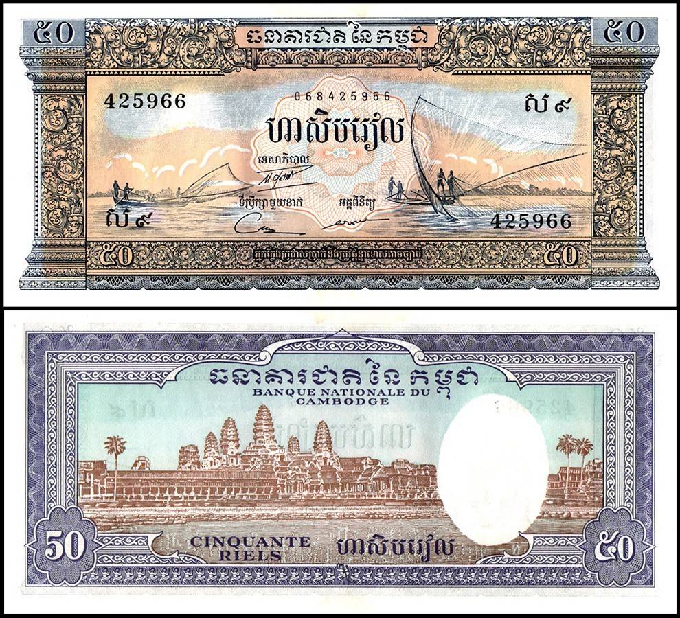 Cambodia 50 Riels Banknote 1972 ND P7d UNC Unique and Rare