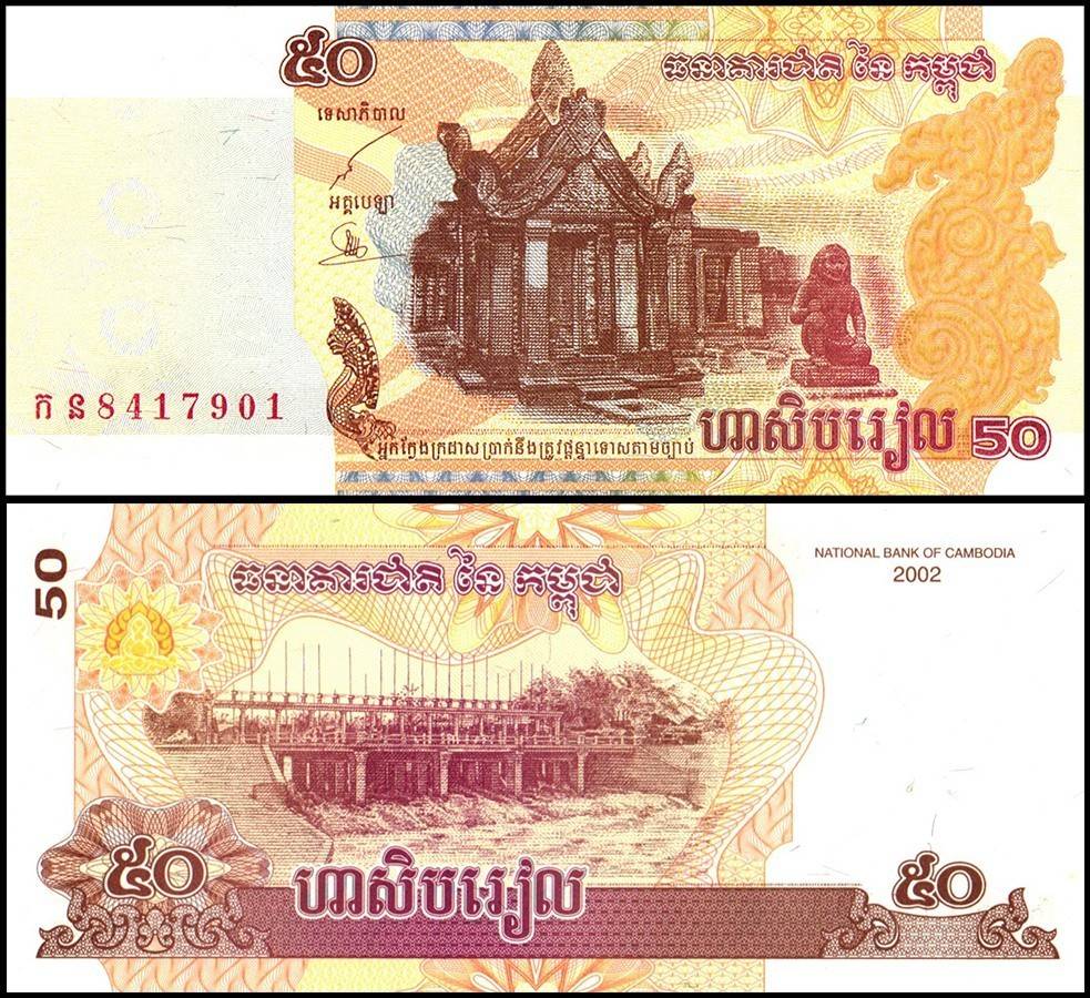 Cambodia 50 Riels World Banknote 2002 P52 UNC Unique and Rare