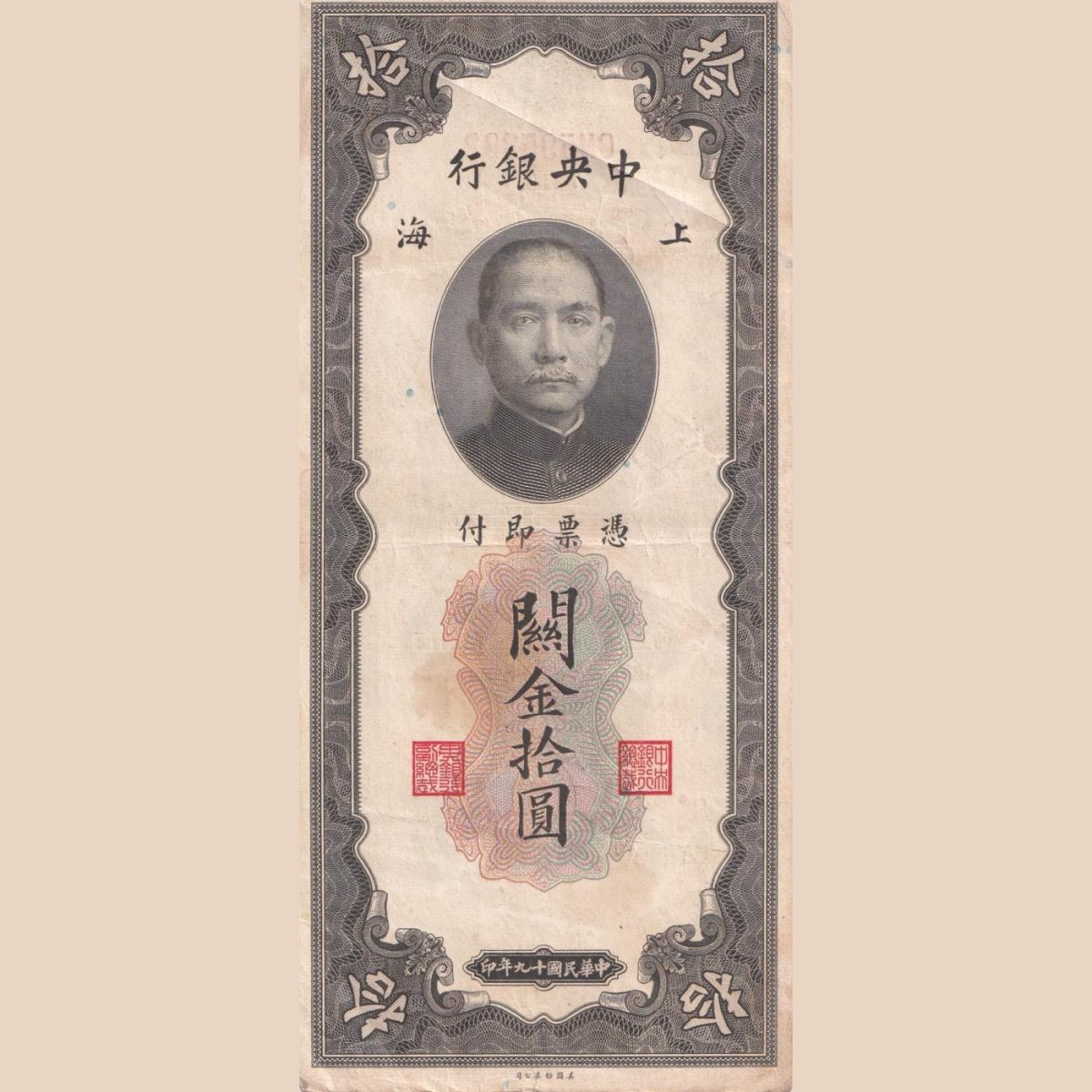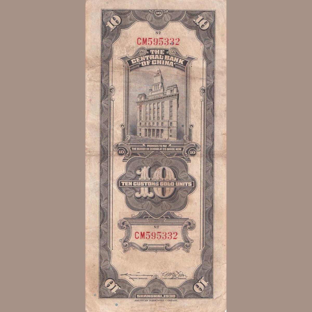 China 10 Yuan Republic of 1 Customs Gold Units Shanghai 1930 Rare Note