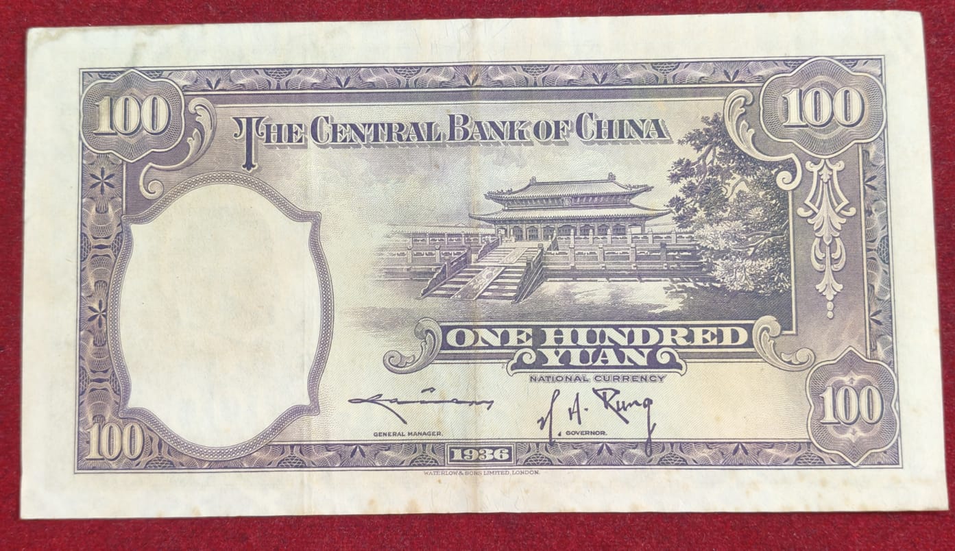 CHINA 100 YUAN 1936 RARE NOTE #B-2
