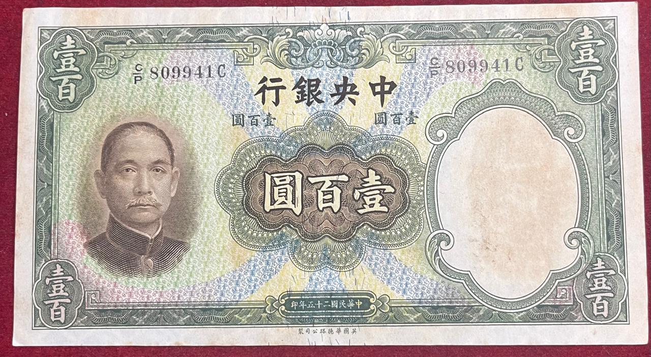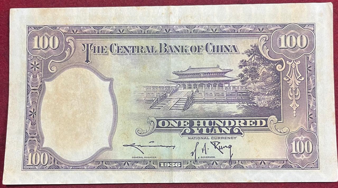 CHINA 100 YUAN 1936 RARE NOTE #B-2