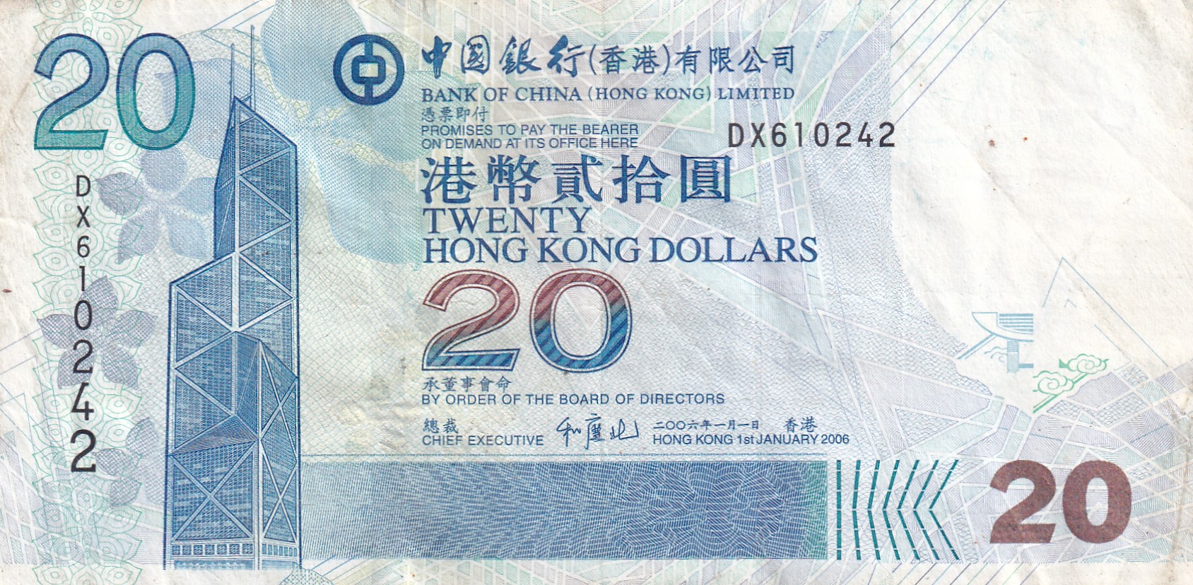 China › Hong Kong 20 Dollars Bank of China RARE NOTE
