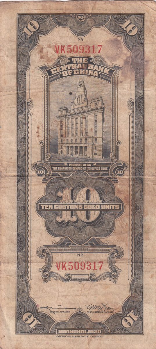 China, Republic of 10 Customs Gold Units Old Rare Note #B-2