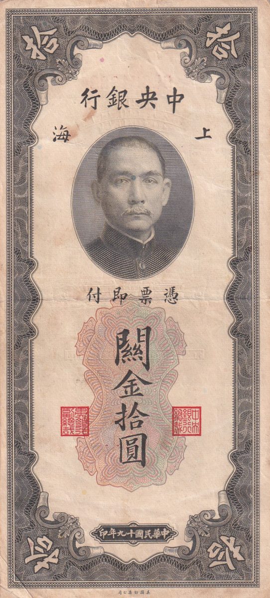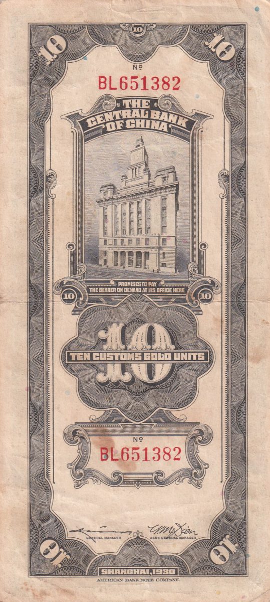 Immerse yourself in the rich history of the Republic of China with this incredibly rare and fascinating collectible – the China, Republic of 10 Customs Gold Units Big Size Note from 1930. Issued by the Central Bank of China during the Republican era (1912-1949), this standard banknote is a true gem for numismatists and history enthusiasts alike. Crafted from paper, it features a denomination of 10 Customs Gold Units in a rectangular shape, measuring 193 × 88 mm. This piece of Chinese republican currency holds immense historical significance, reflecting a bygone era of economic and political transitions. Its demonetized status adds to its allure, making it a coveted item for collectors seeking unique pieces from the past. With its rarity and intricate design, this banknote is not just a monetary artifact but a window to a fascinating chapter in China’s history.