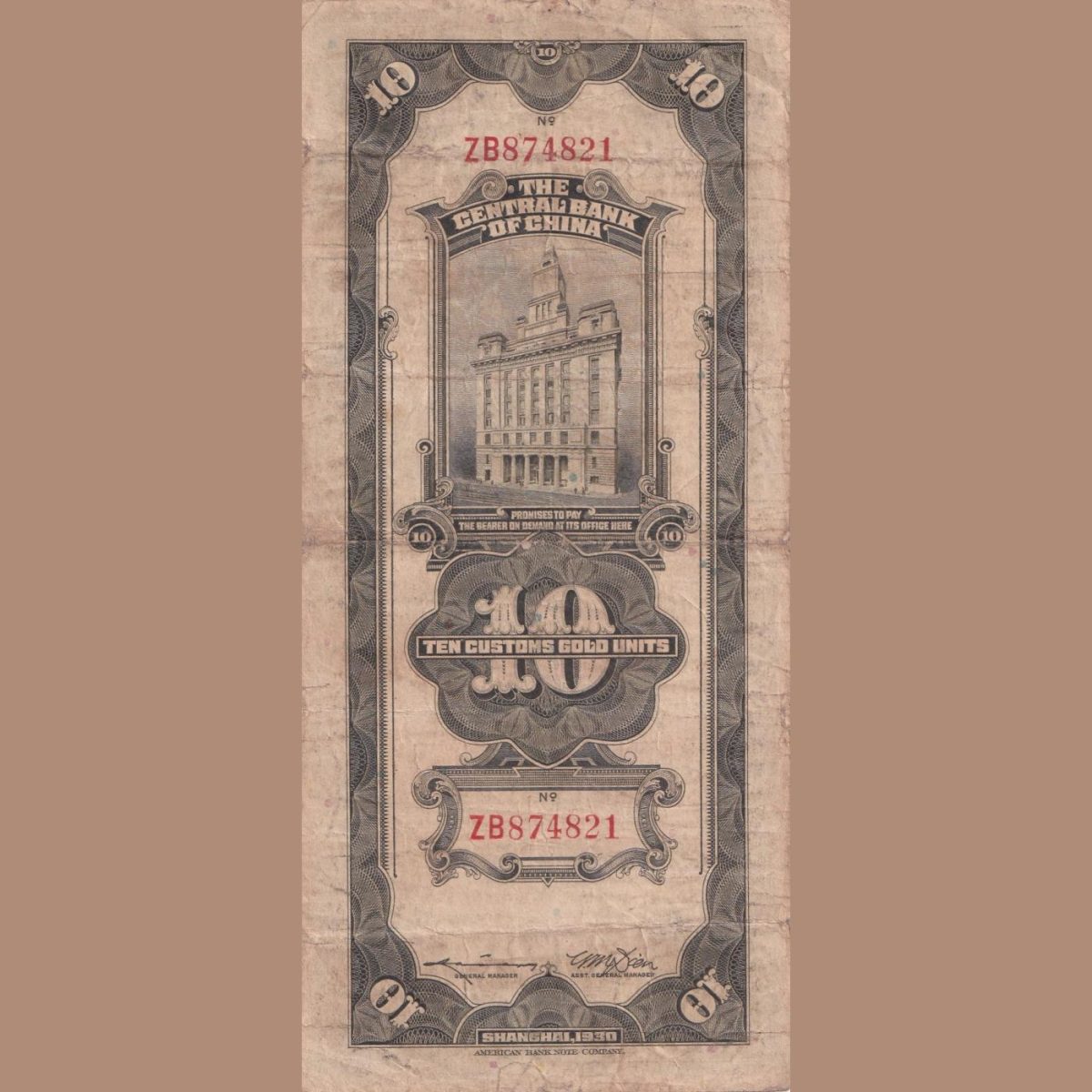 TypeStandard banknoteYear19 (1930)CalendarChinese republicanValue10 Customs Gold UnitsCurrencyCustoms Gold Unit (1930-1948)CompositionPaperSize193 × 88 mmShapeRectangularDemonetizedYesNumberN# 201669 ReferencesP# 327