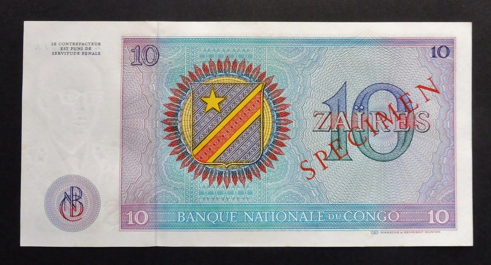 Congo Democratic Republic 10 Zaires Specimen 30 6 1971 Pick 15 s UNC Uncirculated Ref 3 World Banknote Specimen Unique and Rare