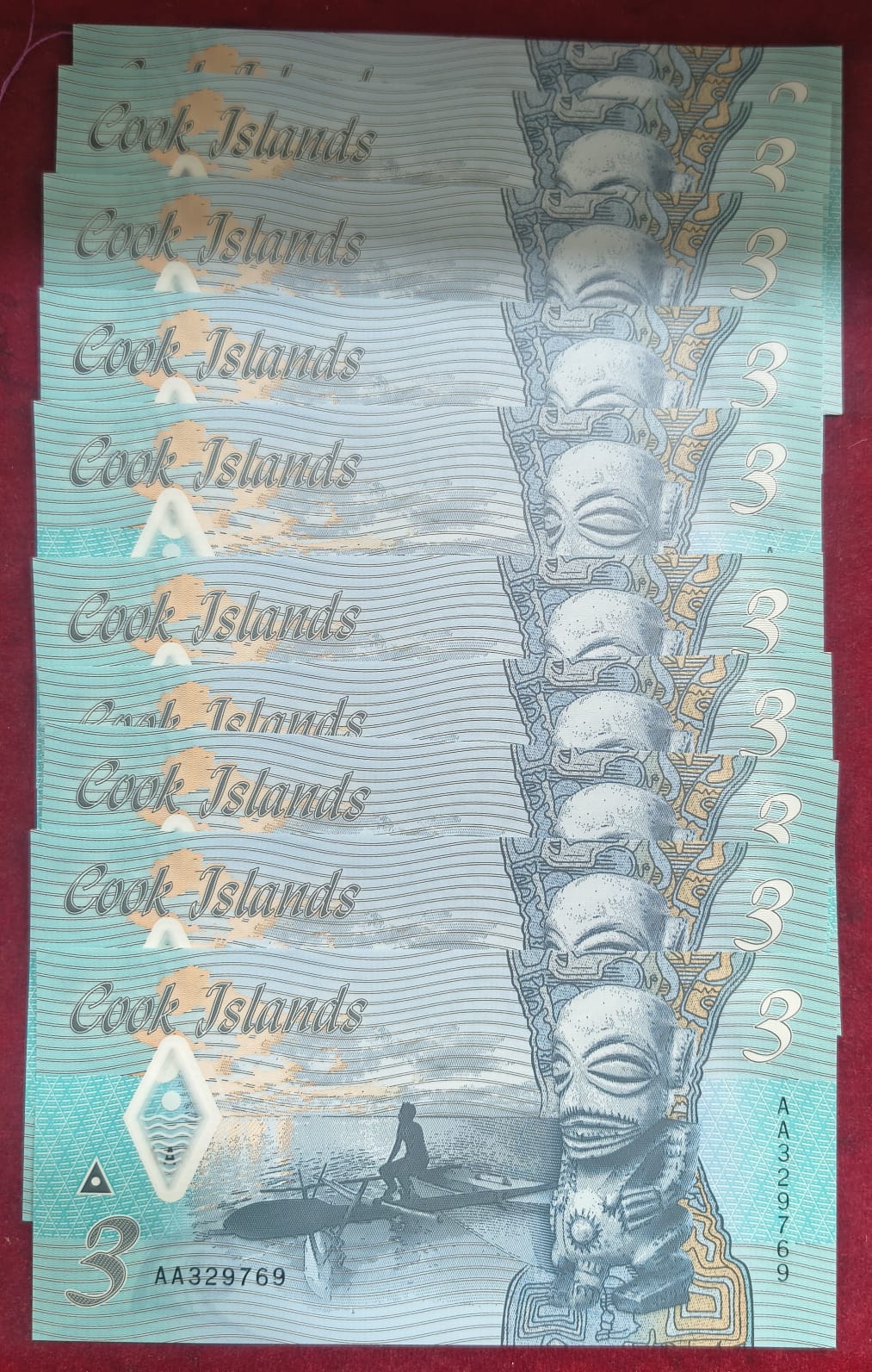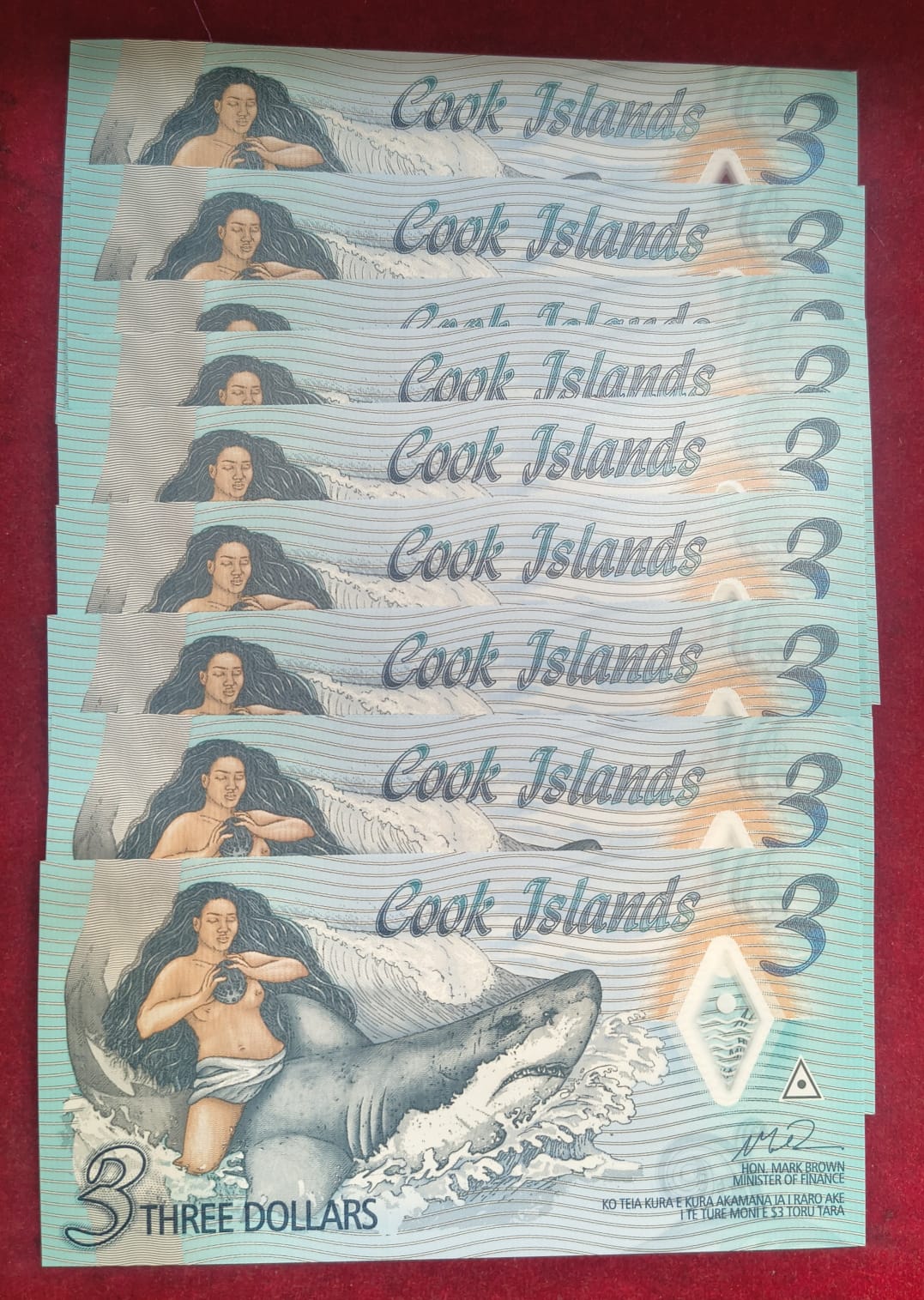 Cook Islands 3 Dollars GEM UNC POLYMER RARE NOTE